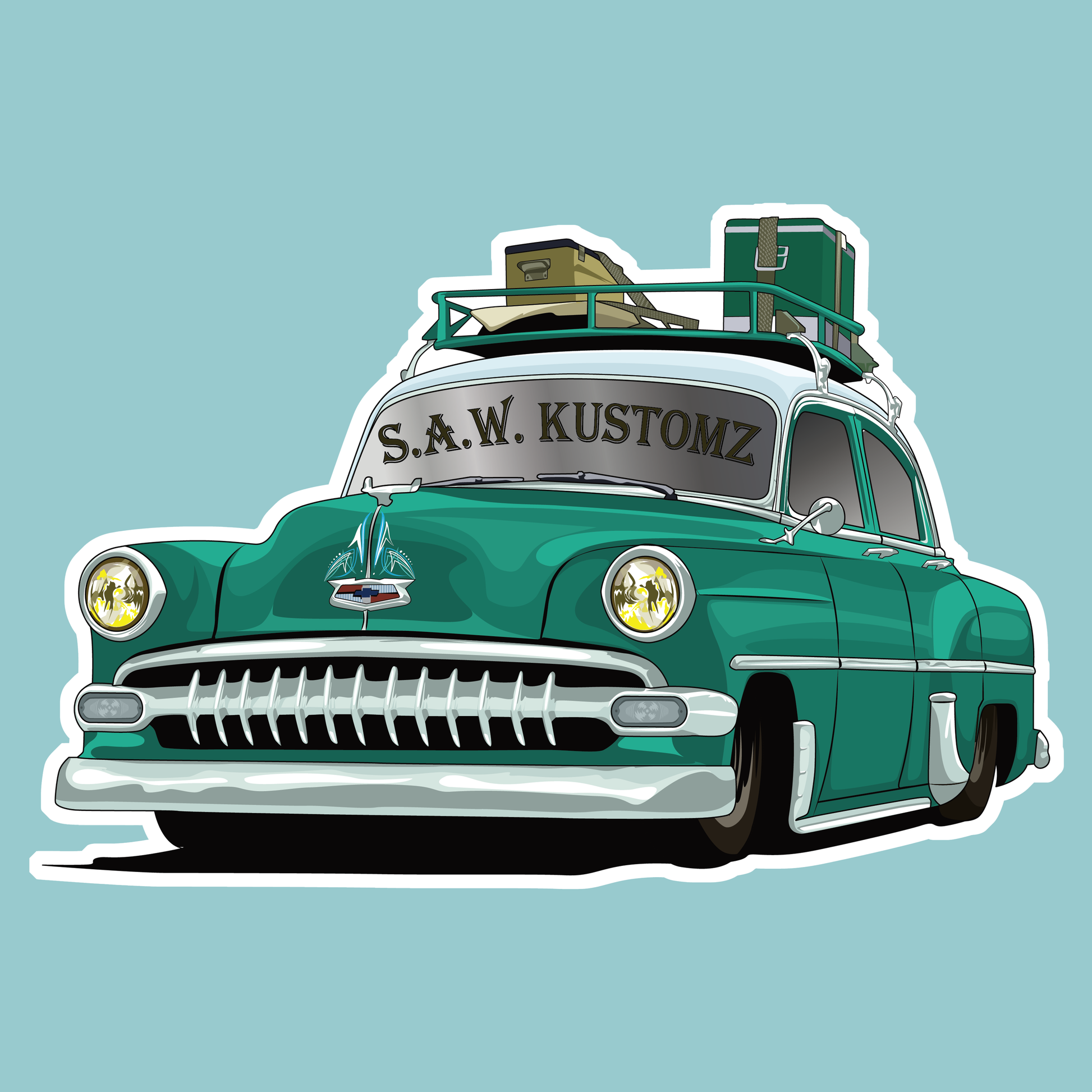 large 4 1/4" x 3" sticker of Stevens 54 Chevy